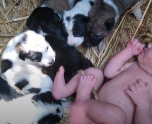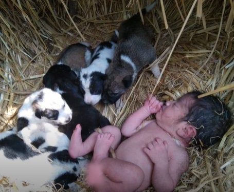 Newborn Baby Saved by Puppies Who Hugged Her Like Their Own Sister