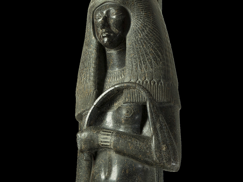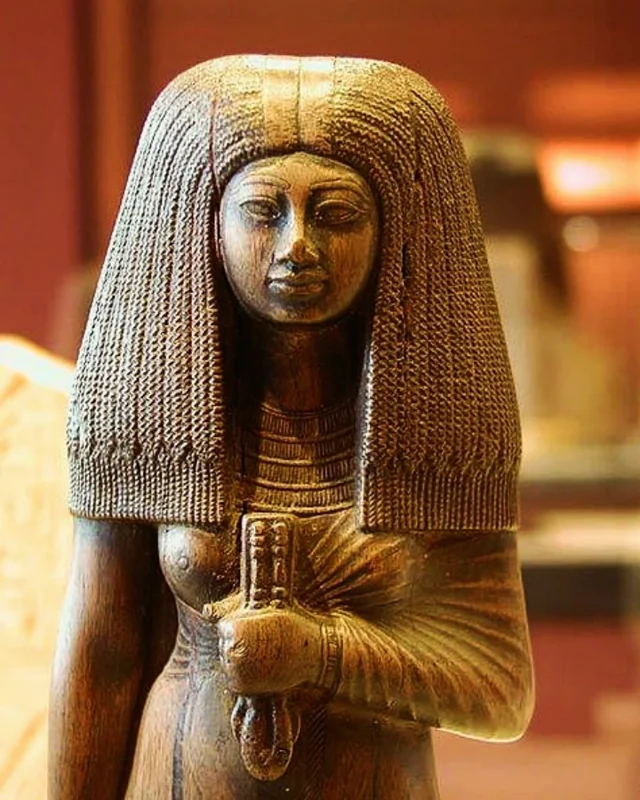 This statuette represents Thuya, the mother of Queen Tiye, wife of Pharaoh Amenhotep III, often called “the Magnificent.” Although of non-royal birth, Thuya achieved high status through her marriage to Yuya, a distinguished official in the royal household.