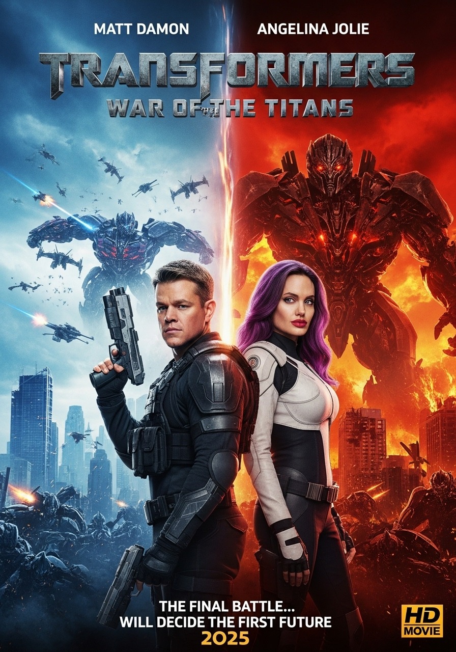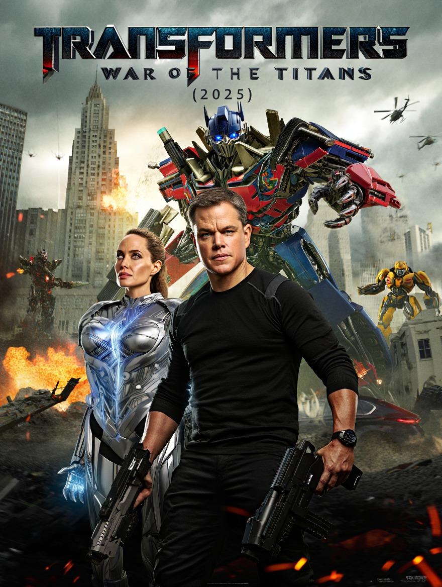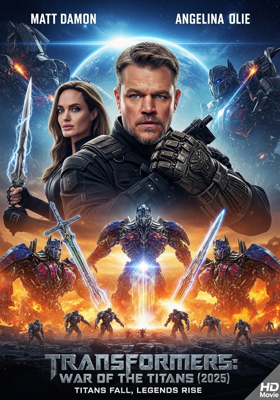 Matt Damon stars as Dr. Ethan Ward, a brilliant but disillusioned ex-military strategist who uncovers a connection between humanity’s DNA and Cybertron’s forgotten past. His discovery makes him the key to unlocking—or stopping—the Titans’ resurrection. Angelina Jolie plays Commander Aria Voss, leader of the Earth Defense Coalition, torn between protecting her planet and trusting the very machines that once brought it to ruin.
