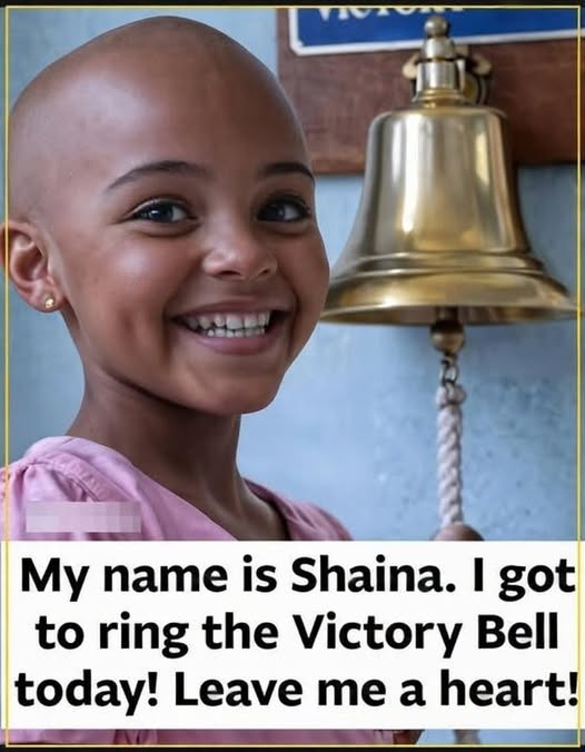 Soft sunlight spilled through the hospital hallway, wrapping the moment in a gentle glow. Standing on her tiptoes, little Shainaina reached up with all her strength, her tiny hand gripping the thick rope attached to a large golden bell. It was almost taller than she was. And yet, in that moment, she looked unstoppable.