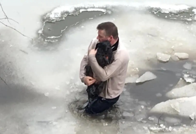 Man Risks His Life Jumping Into Frozen Lake to Save a Stray Dog: A Heartwarming Tale of Courage and Compassion