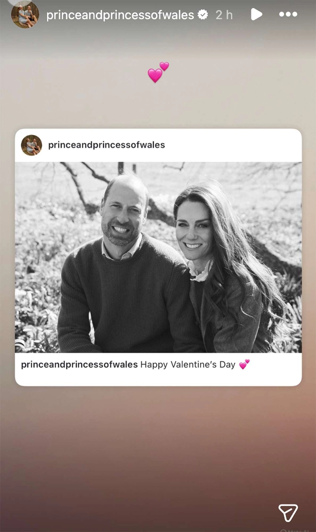 On February 14, the couple posted a previously unseen black-and-white photograph on Instagram, captured last April at Anmer Hall. The image shows William and Kate sitting close together outdoors, smiling warmly, accompanied by a simple caption: “Happy Valentine’s Day” and a heart emoji.