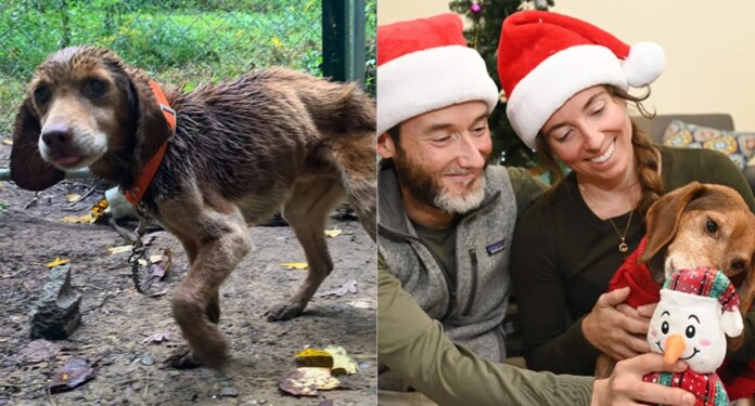 A beagle with a copper-colored coat stood tethered to a short four-foot chain. There was no doghouse, no bowl of water, no escape from the cold earth beneath his paws. His ribs protruded sharply, his fur was patchy, and parasites ravaged his frail body.