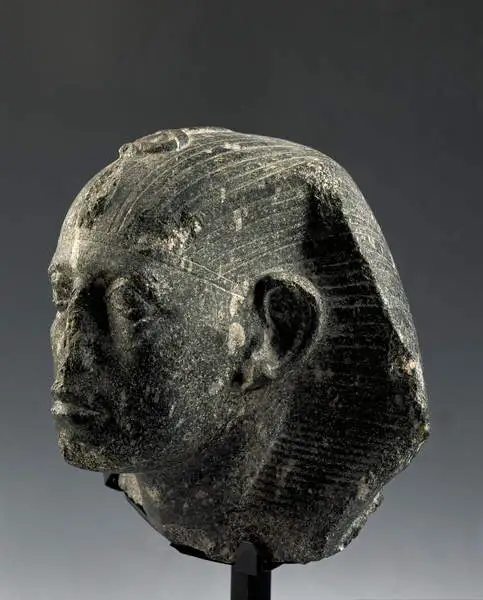 Senusret III, who ruled Egypt for approximately 39 years, was a powerful king of the 12th Dynasty and is often regarded as one of the most formidable rulers of that era. During his reign, artists moved away from the idealized forms of earlier periods, favoring more realistic and sometimes exaggerated features in royal sculptures.