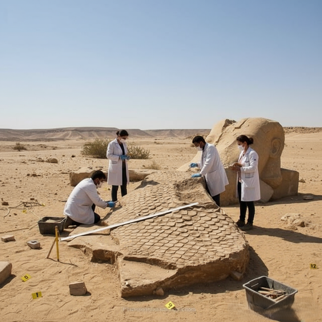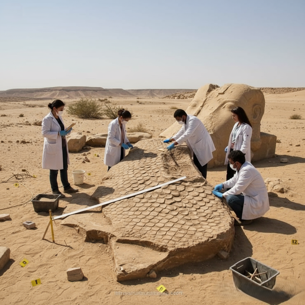 A startling archaeological discovery has emerged from the barren expanse of a North African desert, where researchers have unearthed the remnants of a colossal statue bearing distinctly reptilian features. The figure, carved with an uncanny realism, displays a humanoid form covered in scale-like textures that shimmer under sunlight, suggesting craftsmanship of extraordinary precision. Preliminary estimates indicate the statue may date back several millennia—possibly predating the earliest known Egyptian dynasties.