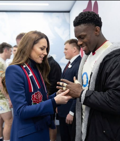 Catherine, Princess of Wales was attending the match in her role as Patron of the Rugby Football Union, a position she has held since 2022. While much of the crowd focused on the action unfolding on the pitch, cameras briefly caught something far more personal happening on the sidelines.