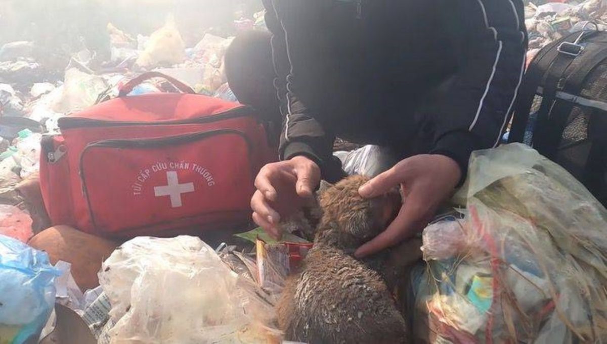 For reasons we may never know, the person decided the little one was no longer useful, no longer worth caring for, and abandoned him as if he were nothing more than waste. Surrounded by broken bottles, plastic, and the stench of decay, this tiny soul fought for every breath.