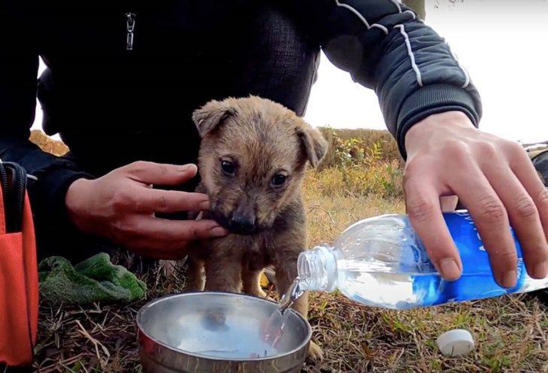 The team cleaned his body gently with water, wiped the dirt from his fur, and gave him something to drink. It was the first clean sip of water he had had in days — maybe weeks.