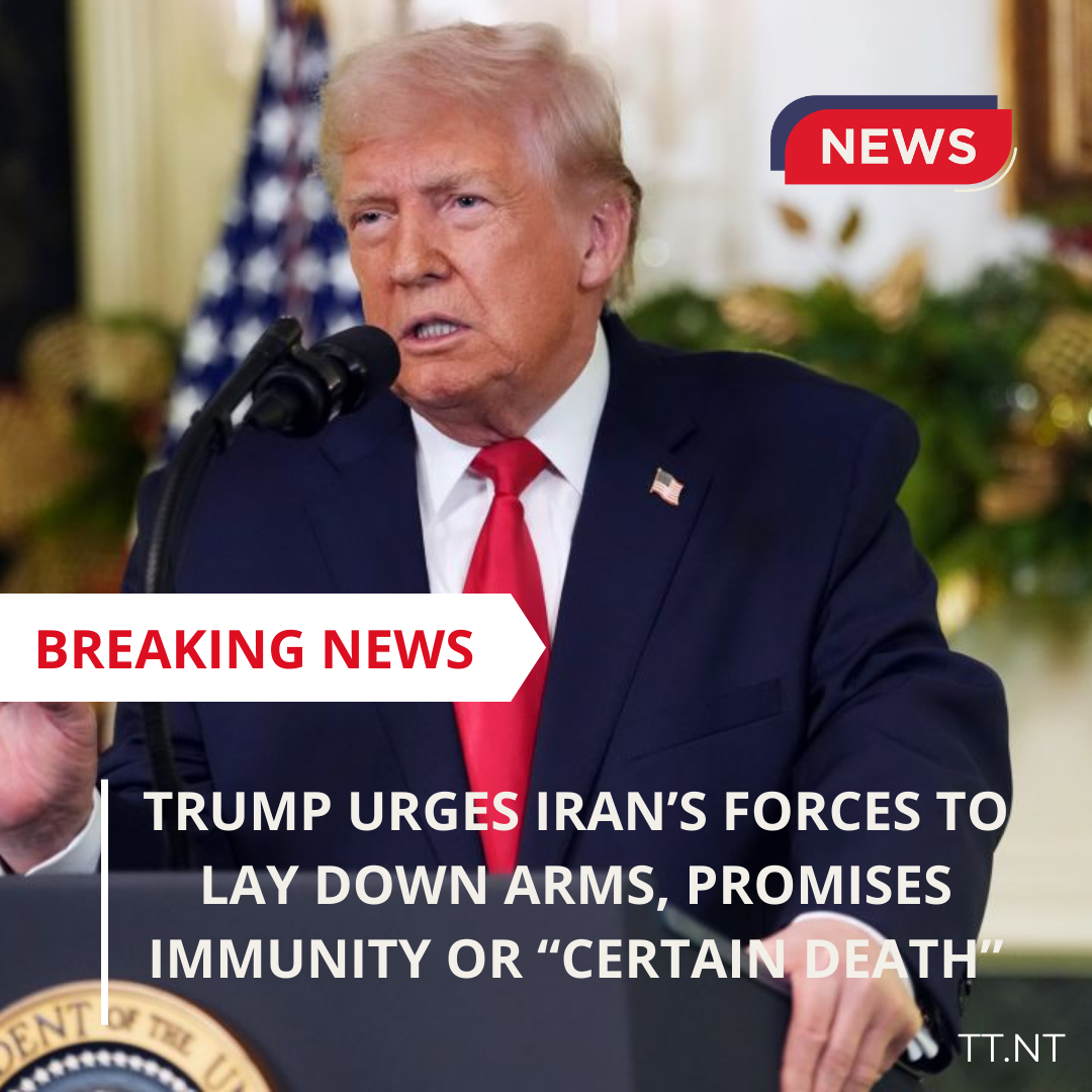 Trump Urges Iran’s Forces to Lay Down Arms, Promises Immunity or “Certain Death”