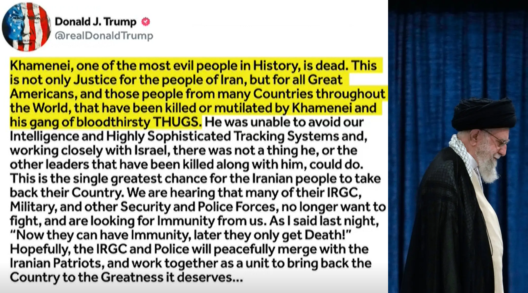 Trump later described Khamenei’s death as “justice for the people of Iran,” a statement that has drawn fierce reactions across the Middle East and beyond 💬🔥.