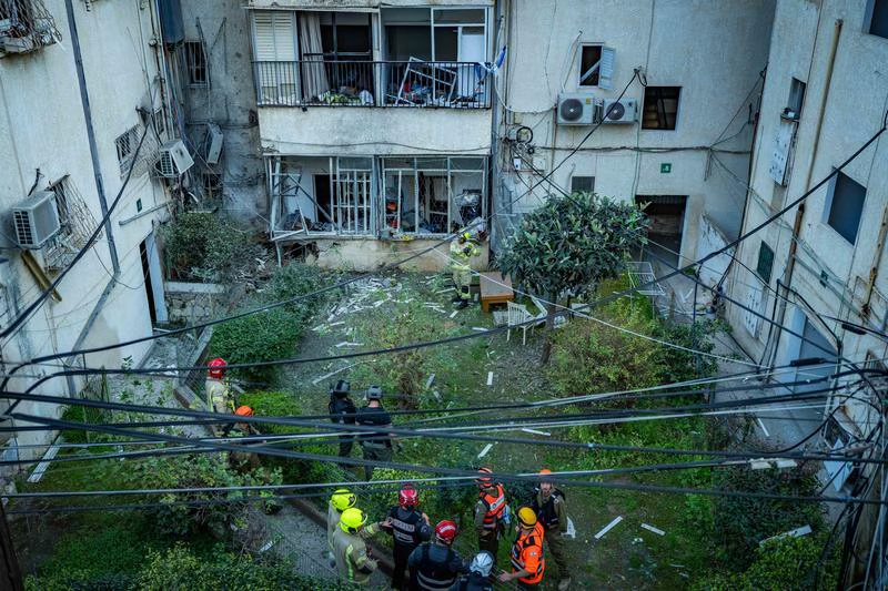 Israeli rescue and emergency forces were on the ground in Ramat Gan, in the Tel Aviv metropolitan area, responding to damage caused by falling shrapnel from an Iranian-fired ballistic missile during Iran’s latest retaliatory barrage against Israel. The missile attack, part of a broader escalation following joint U.S.–Israeli strikes on Iranian targets, triggered sirens across central Israel and prompted widespread emergency response operations.