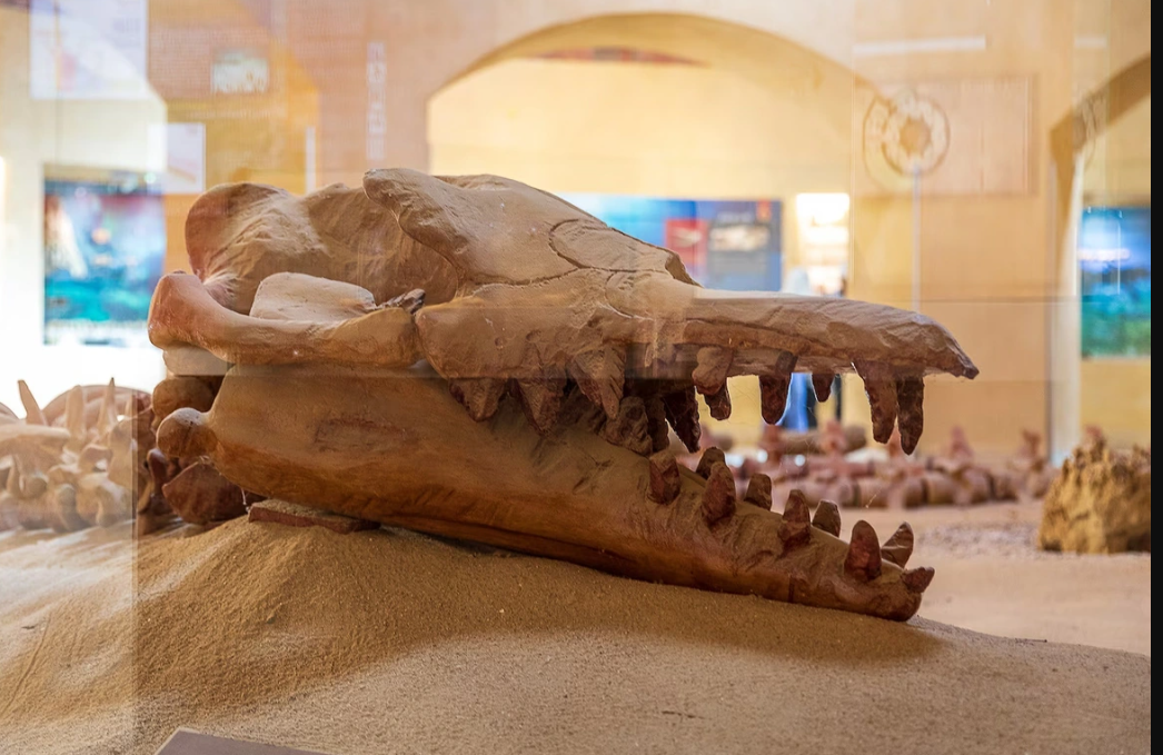 The skull tells an equally fascinating story. Rather than resembling the sleek heads of today’s whales, it bore features more similar to terrestrial carnivores — elongated jaws and teeth suited for grasping prey. Its anatomy paints a vivid picture of a transitional predator, moving between shallow coastal waters and sandy shores, perhaps hunting in rivers or estuaries much like modern otters. In water, it likely propelled itself with powerful strokes of its limbs; on land, it could haul its body ashore to rest, avoid predators, or protect its young.