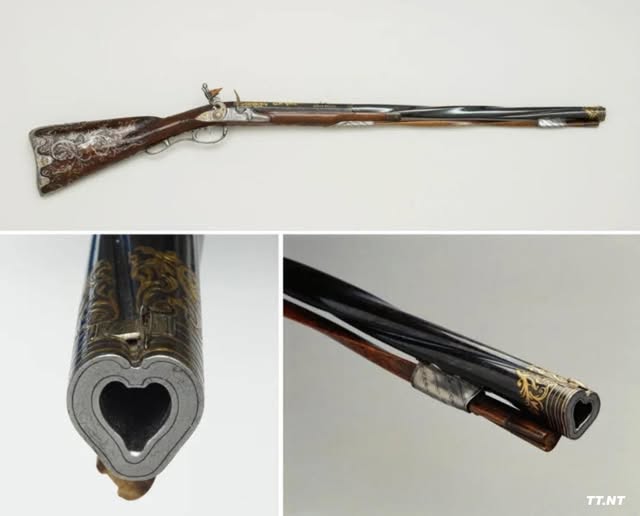 An extraordinary 1765 flintlock rifle featuring a twisted barrel and a rare heart-shaped bore stands as one of the most unusual firearms in the Royal Collection Trust.