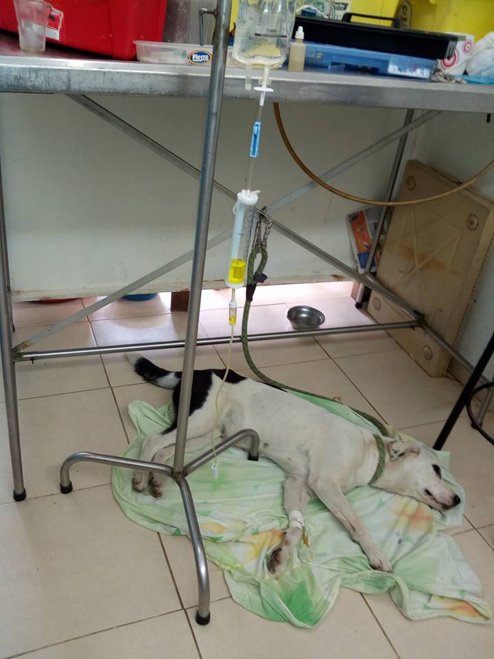 Finally, one airline offered to help transport her to a safe place. She was taken to a local animal protection foundation, where veterinarian Alejandro Sontomonte Niño examined her. Her condition was critical. She had stopped eating voluntarily and had lost the strength to move with purpose. Her body, overwhelmed by stress and heartbreak, needed immediate intervention. IV fluids were administered, and medications were given to stabilize her, but even professional care could not heal the emotional wounds she carried.
