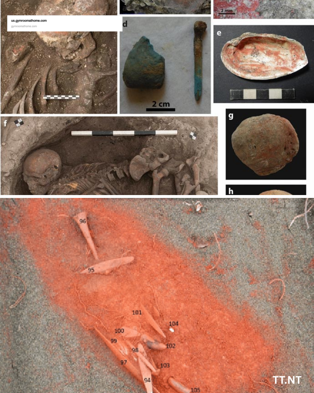 Child grave impregnated with red ochre, and showing a human femur (96)... |  Download Scientific Diagram