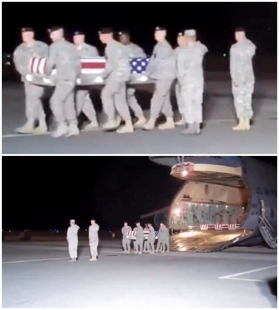 Just after midnight, beneath a sky heavy with stillness, a military aircraft descended through the darkness and touched American soil. There were no flashing cameras waiting on the runway, no applause rising to greet its arrival. Instead, there was silence — the kind that carries weight. The kind that understands something sacred is unfolding. As the engines powered down, an honor guard stood ready, faces set with discipline and reverence, knowing the gravity of the task before them.