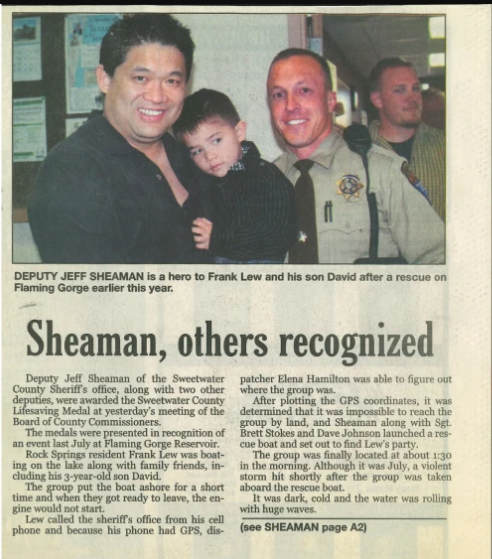 Fifteen years ago, during a sudden and dangerous storm on a reservoir, David was only three years old when disaster struck. The family found themselves in peril as harsh weather overtook the water. Responding to the emergency was Detective Sgt. Jeff Sheaman of the Sweetwater County Sheriff’s Office.