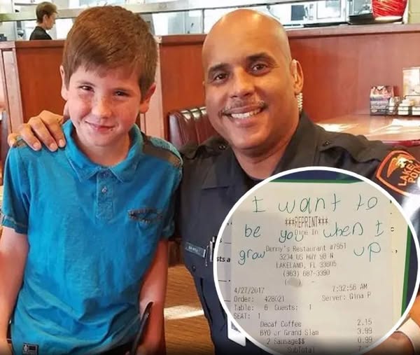 On the receipt, he left a handwritten note explaining that he hopes to grow up to become a police officer one day. He thanked the officer for his service and for the work he does to protect the community. It was a small piece of paper, but it carried enormous meaning.