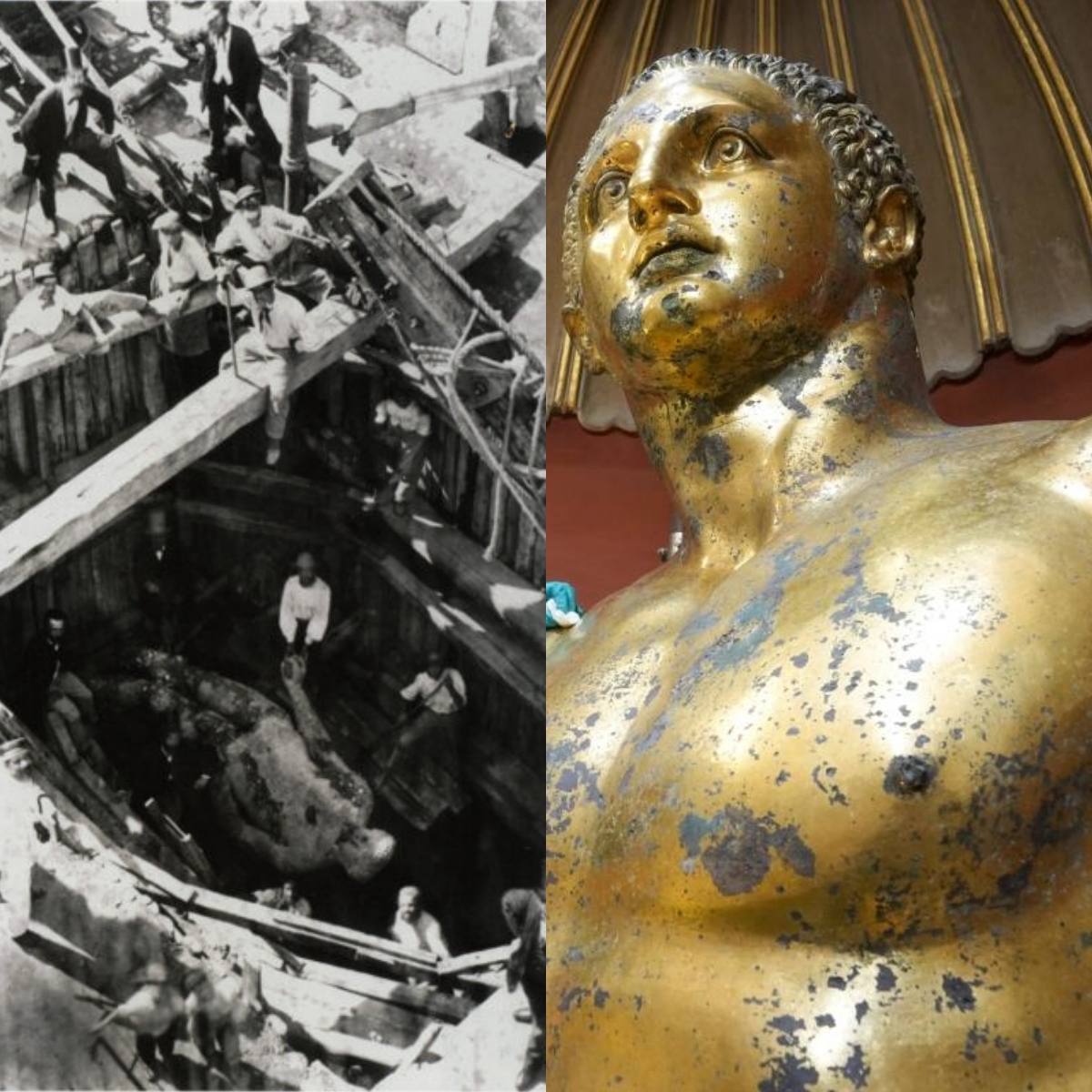 A gilded bronze statue dating from roughly 100–300 AD was first uncovered in 1864 during construction work near a banker’s villa in Rome. Covered in gold leaf, the statue reveals the extraordinary skill of Roman metalworkers.