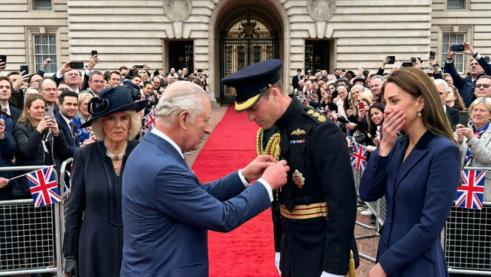 Before a gathering of dignitaries, guests, and cameras, the King carefully fastened a distinguished insignia onto Prince William’s uniform — a ceremonial act often associated with appointments to historic royal orders or recognition of service and duty. The moment, though brief, carried unmistakable meaning within the long-standing traditions of the British monarchy.