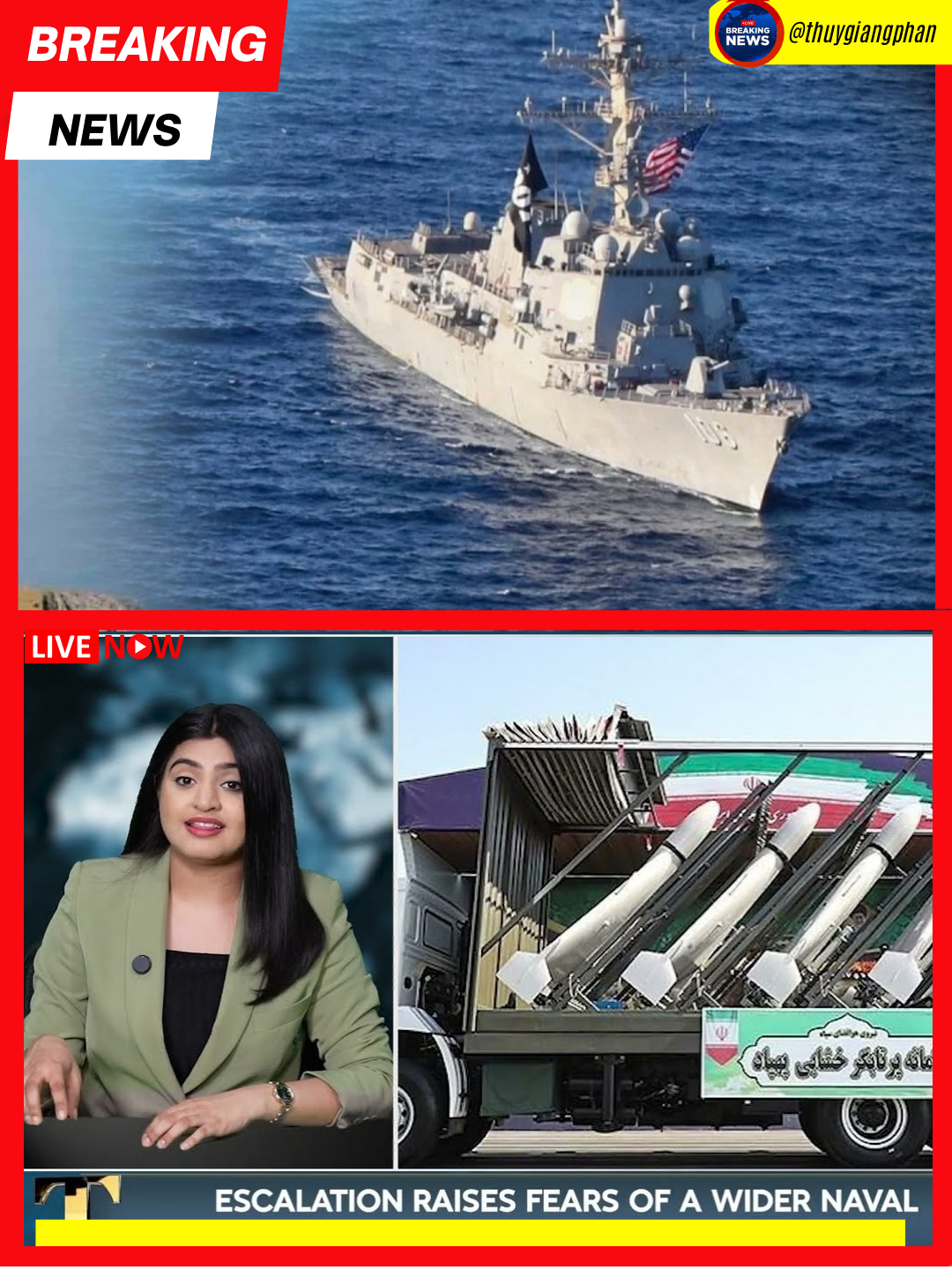 Iran claims its forces successfully struck a U.S. Navy Arleigh Burke-class destroyer operating in the Indian Ocean near the Strait of Hormuz using a combination of Ghadr and Talaieh ballistic missiles. The vessel was reportedly conducting refueling operations close to waters used in recent India-U.S. naval exercises. Iranian state media released footage purporting to show the hit and secondary explosions.