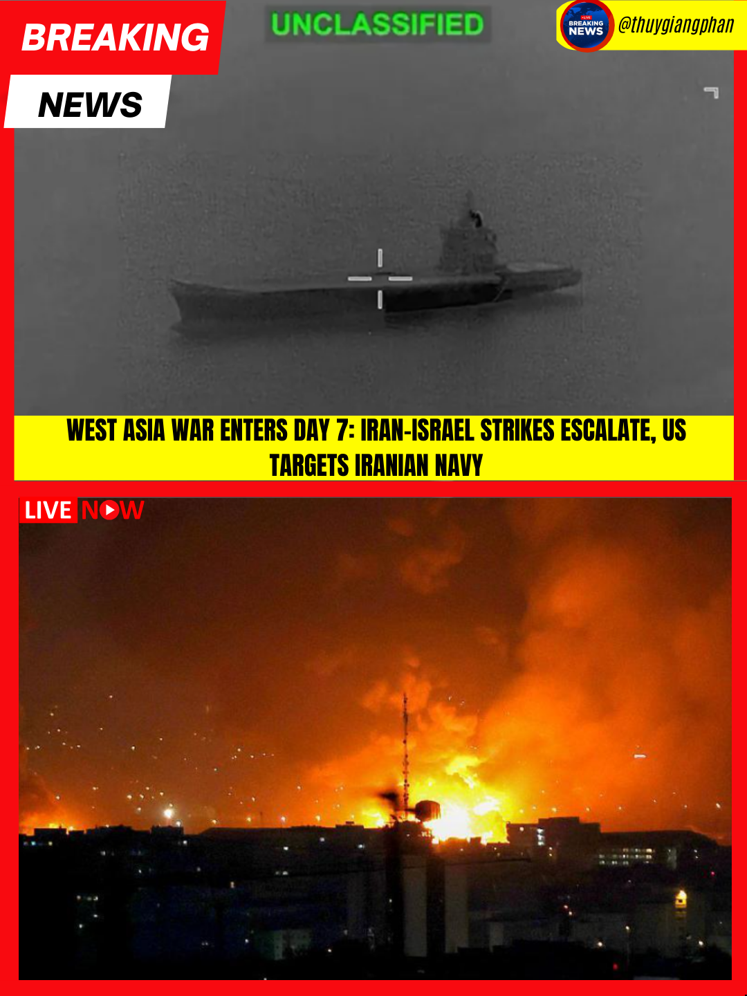 West Asia War Enters Day 7: Iran-Israel Strikes Escalate, US Targets Iranian Navy🚢