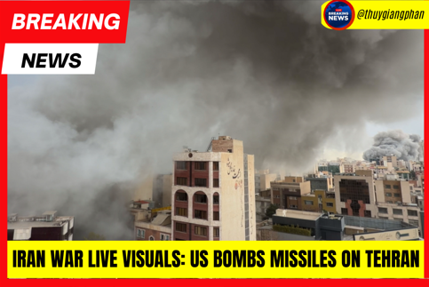 Dramatic live visuals from Tehran show US and coalition forces conducting intense nighttime bombing runs targeting missile sites and military infrastructure across the Iranian capital. Explosions and fires light up the skyline as precision munitions strike key facilities, with smoke plumes rising visibly from multiple locations. Real-time footage captured by local and international sources reveals the scale and intensity of the ongoing operation.