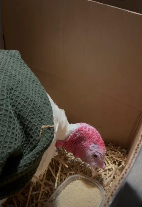 Rather than turning away, they opened their door — and their hearts. The family carefully brought the turkey inside their warm home, giving him a safe place to rest while they figured out what to do next.