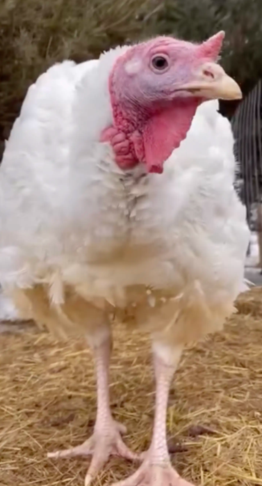 But time, patience, and kindness slowly began to heal him. After spending about a month in quarantine recovering and adjusting to his surroundings, William began to change. The fearful, silent bird gradually transformed into a curious and social turkey who finally felt secure in his new world.