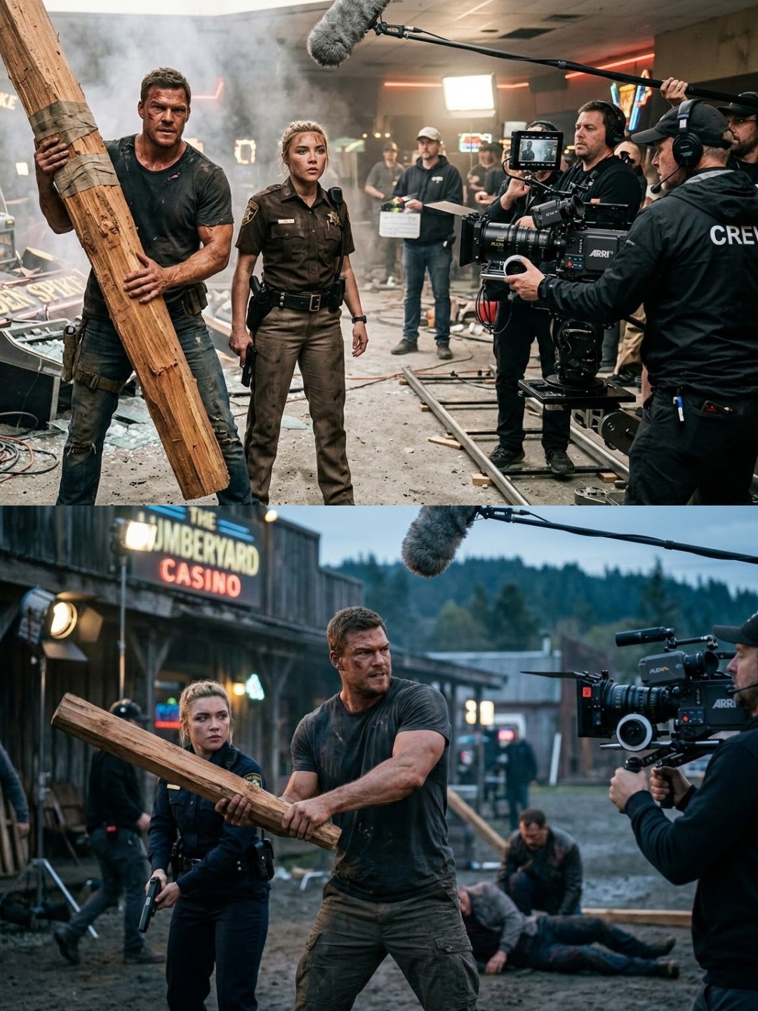 Standing in the middle of this broken system is Sheriff Ellie Harper (Florence Pugh). She’s tough, intelligent, and deeply conflicted—caught between enforcing the law and surviving in a town where powerful people control everything. Vaughn quickly realizes she might be the only honest person left in authority… but he isn’t sure if she will stand with him or stop him.