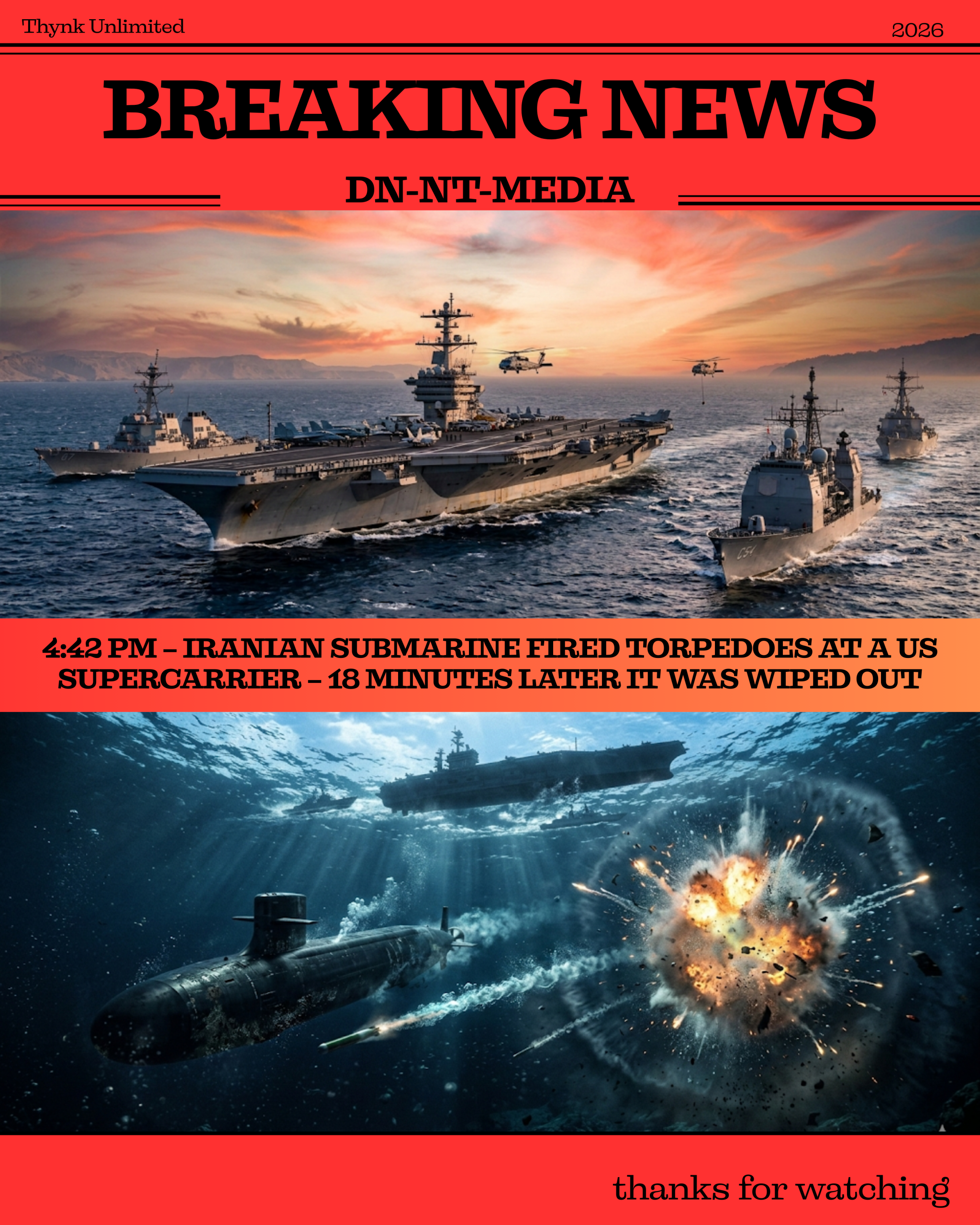 4:42 PM – Iranian Submarine Fired Torpedoes at a US Supercarrier – 18 Minutes Later It Was Wiped Out