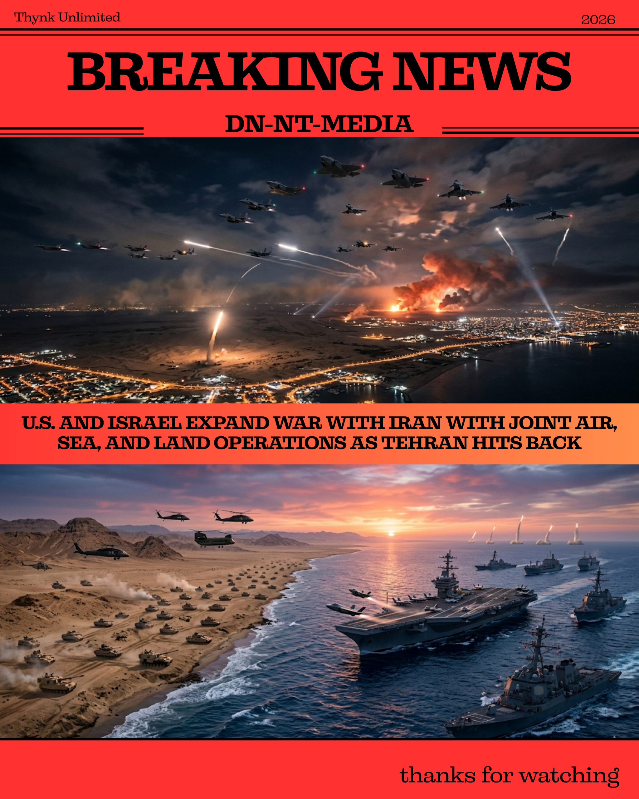 U.S. and Israel Expand War With Iran With Joint Air, Sea, and Land Operations as Tehran Hits Back