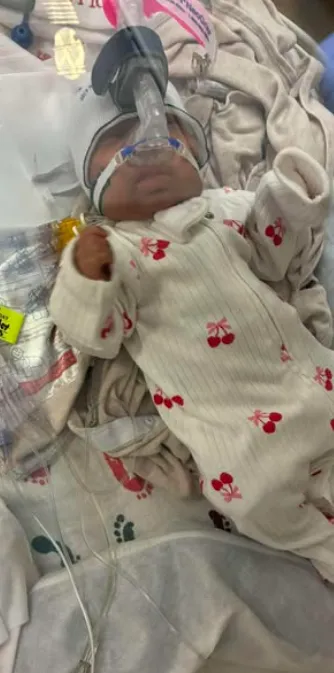 She is now breathing with the help of bubble CPAP, a form of respiratory support that is less invasive than full mechanical ventilation.