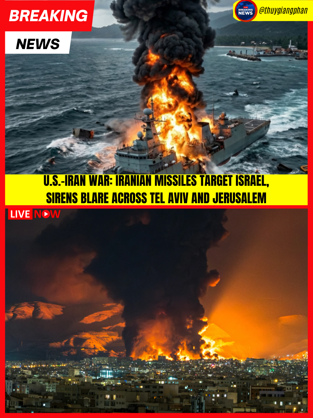 U.S.-Iran War: Iranian Missiles Target Israel, Sirens Blare Across Tel Aviv and Jerusalem