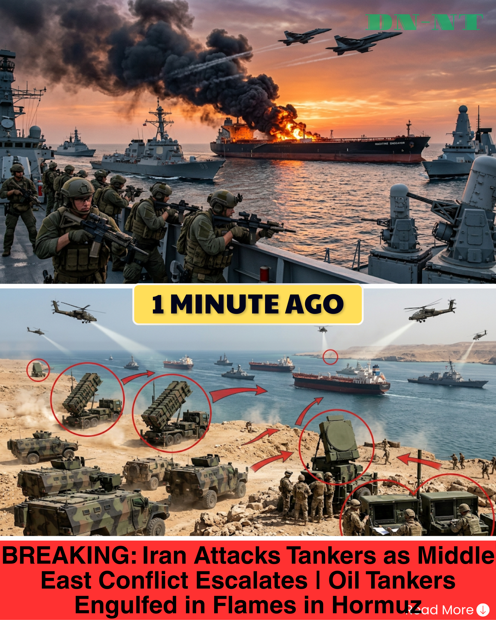 A dramatic escalation in the Middle East conflict has unfolded as multiple oil tankers were struck in coordinated maritime attacks near the strategic Strait of Hormuz, triggering fires, evacuations, and renewed fears of a global energy crisis. According to international reporting, at least several commercial vessels were hit by explosive projectiles or drone-based assaults, with some ships catching fire and crew members reported injured or missing.