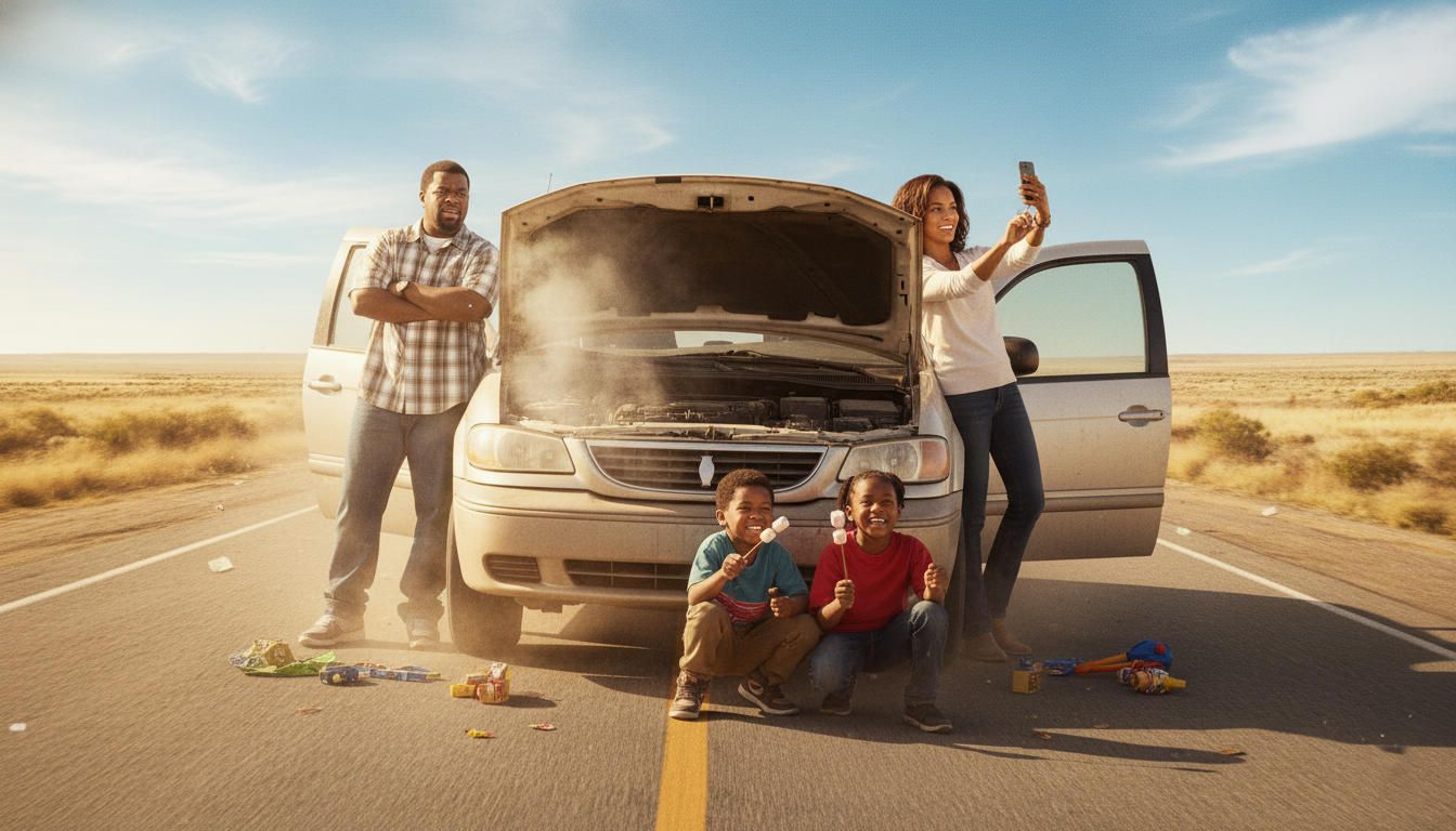 A simple family vacation turns into a laugh-out-loud odyssey of misadventures — from car breakdowns in the middle of nowhere, chaotic pit stops, and sibling pranks gone wrong, to run-ins with wildlife and overenthusiastic locals. Every wrong turn brings a new challenge, testing Nick’s patience, Suzanne’s calm, and the kids’ creativity for trouble.