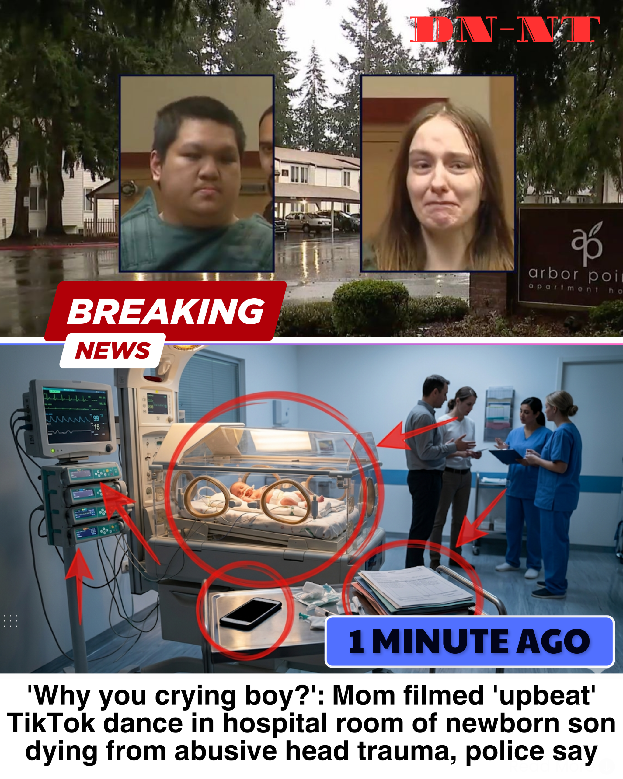 Police allege that during the child’s hospitalization, the mother recorded social-media videos in the hospital room, behavior prosecutors later described as deeply concerning in light of the infant’s critical condition. Medical experts involved in the case say the injuries were life-threatening and required intensive care, though the child ultimately did not survive.