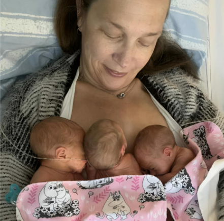 The high-risk journey tested every limit of her body and spirit. Doctors issued constant warnings about the dangers of carrying three babies at her age, and Marie endured months of intense pain, relentless fatigue, and terrifying medical check-ups. The pregnancy pushed her to the very edge, with specialists monitoring her around the clock. In the end, an emergency caesarean section brought her three tiny premature warriors into the world, each weighing between 1,000 and 1,500 grams.