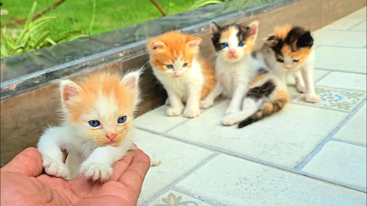 I adopt homeless kittens meowing on the side of the road, small rescued, kittens, little so cute