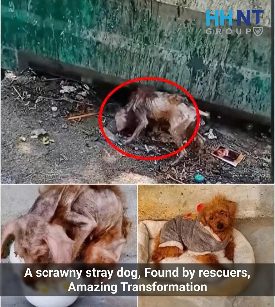 A scrawny stray dog, found by rescuers, amazing transformation