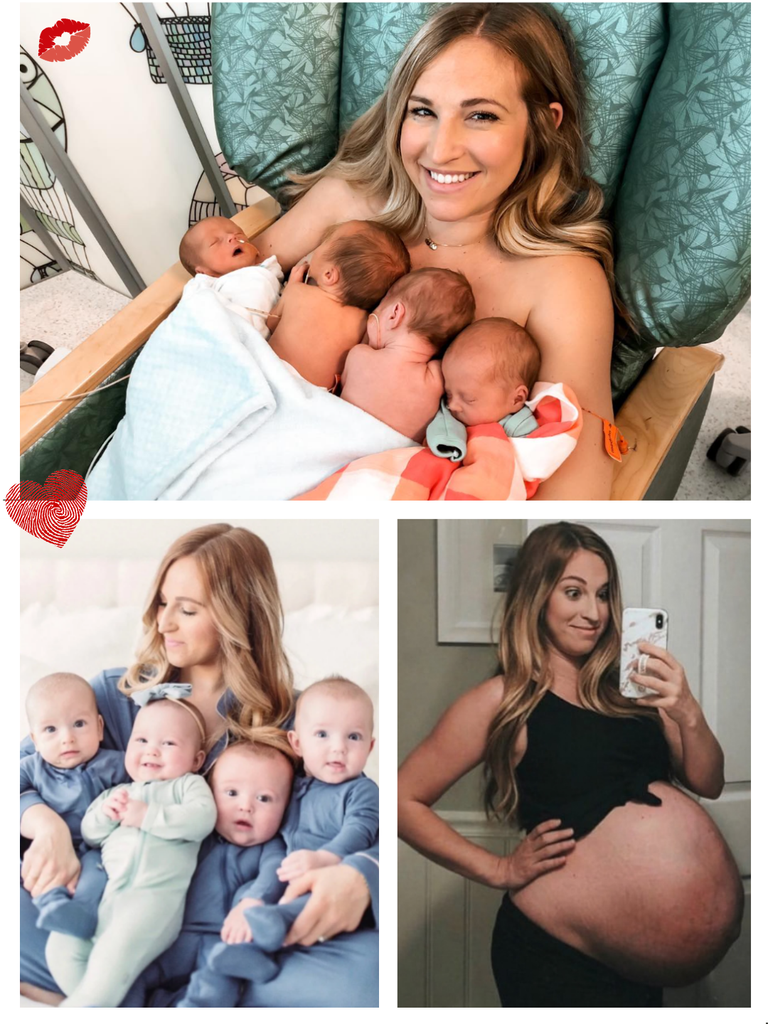 At 30 weeks, after an intensely monitored pregnancy filled with hospital stays and careful management, Lindsay delivered four healthy babies following a challenging caesarean section. The side-by-side photographs documenting her transformation — from her tiny frame to an enormous belly and finally to the moment she held all four newborns in her arms — quickly went viral across social media platforms. Lindsay now looks back at those images with immense pride rather than discomfort, calling the marks on her body and the entire experience of carrying her quadruplets her greatest personal achievement.