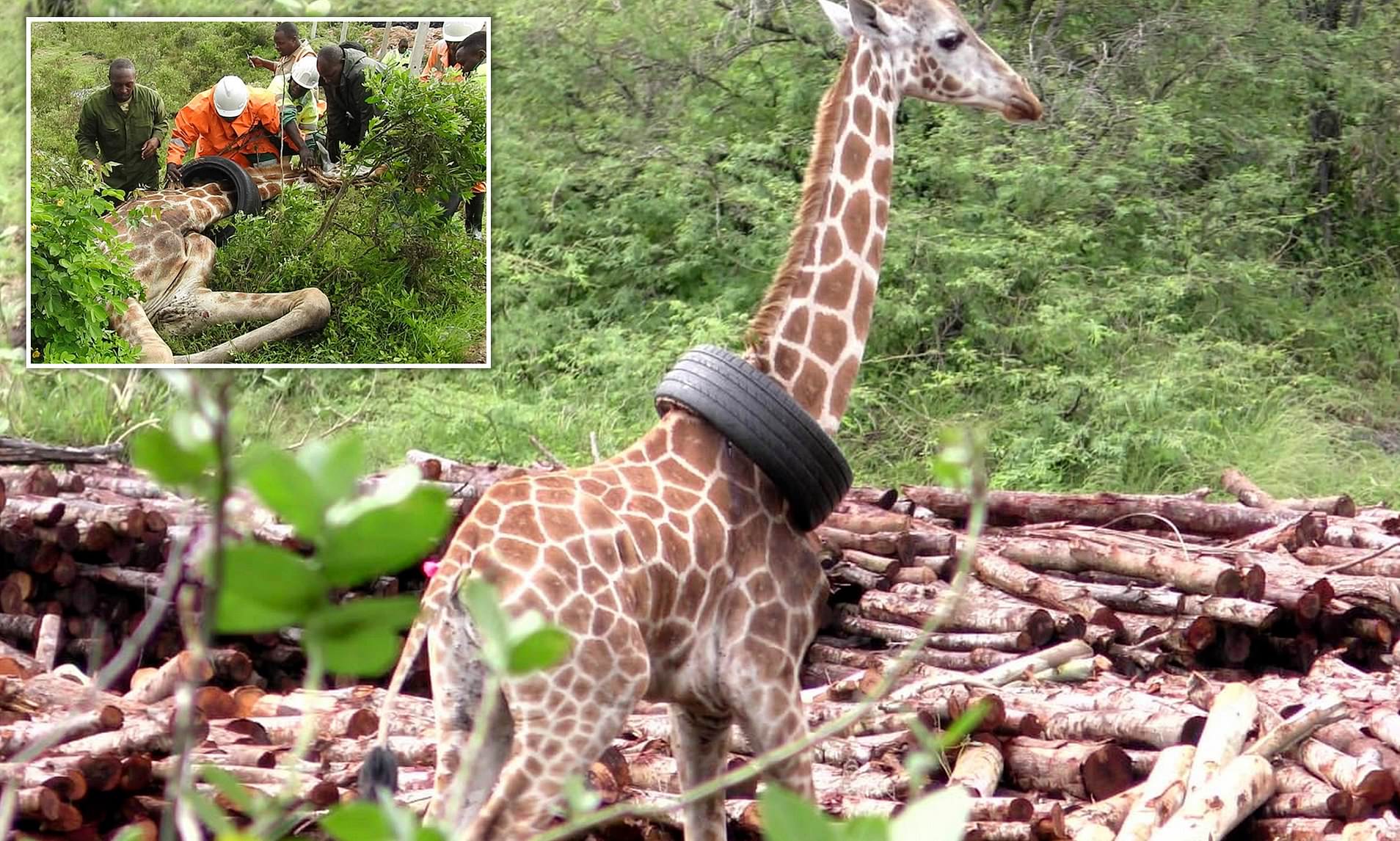 Giraffe Trapped with Tire Around Her Neck: A Heartwarming Rescue Story