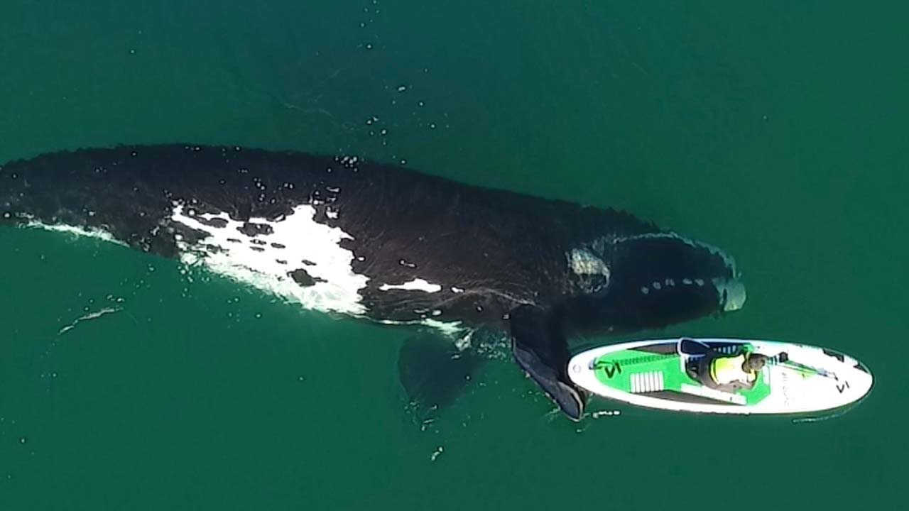 Giant Whale Approaches Unsuspecting Paddleboarder: An Unforgettable Encounter
