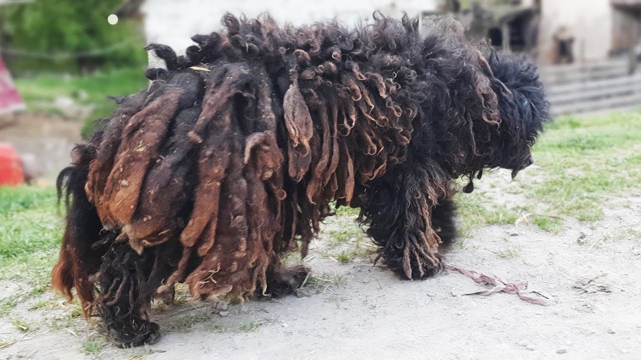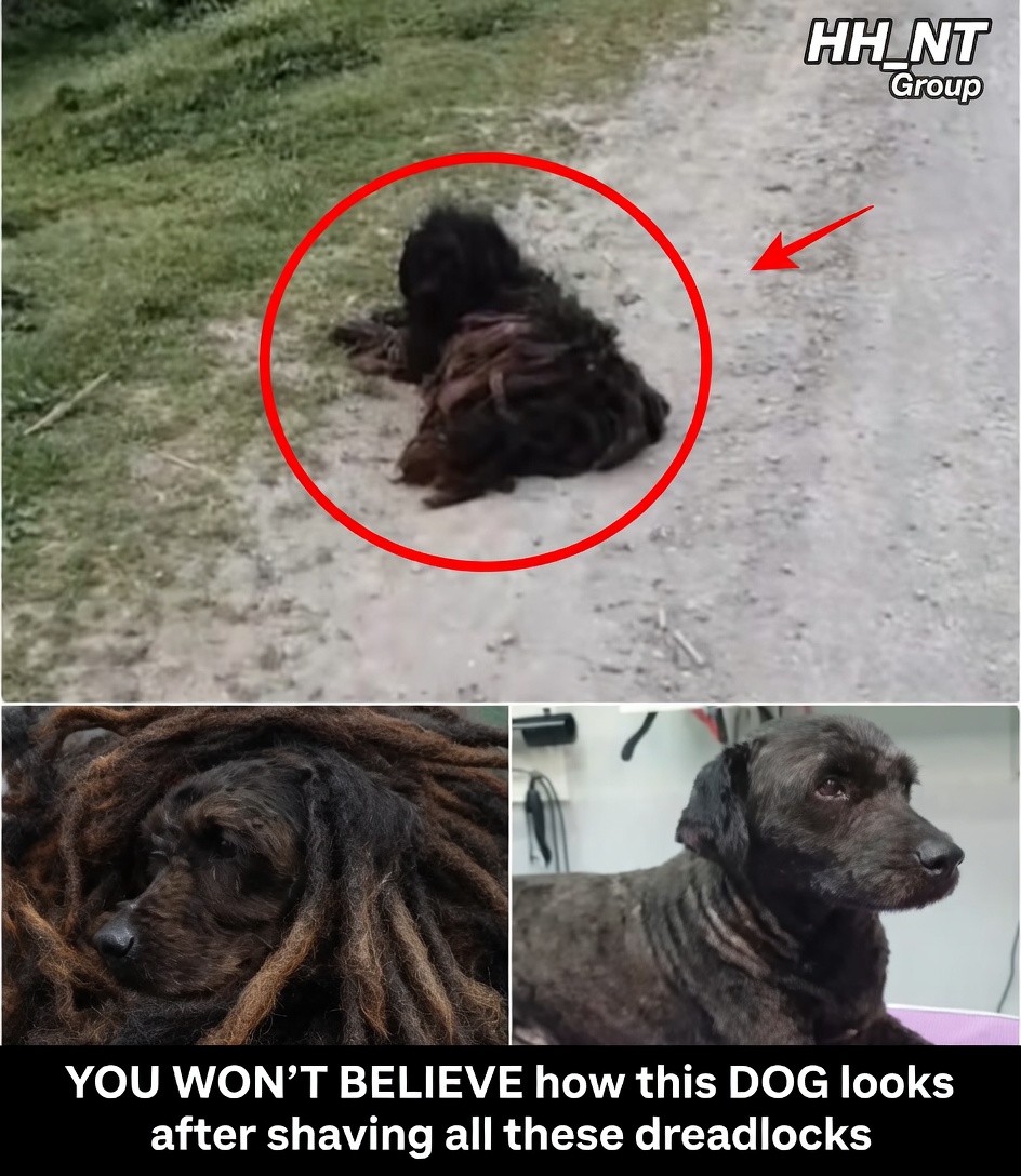This poor pup was buried under layers of heavy, filthy dreadlocks—matted fur so thick and tangled it looked like a walking mop, weighing him down and hiding his true self. He could barely move, eyes barely visible through the mess, suffering in silence from neglect.