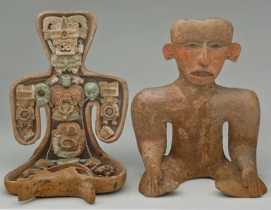 “Host” figures were likely used in private ritual contexts, with the inner figures revealed at key moments. They reflect profound Mesoamerican concepts of personhood and spirituality, expressing the belief that an inner essence—whether ancestral, divine, or elemental—resided within every human being.