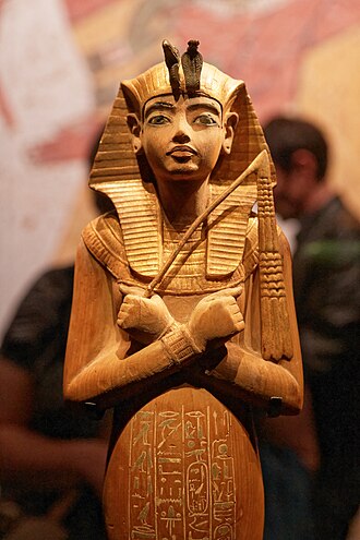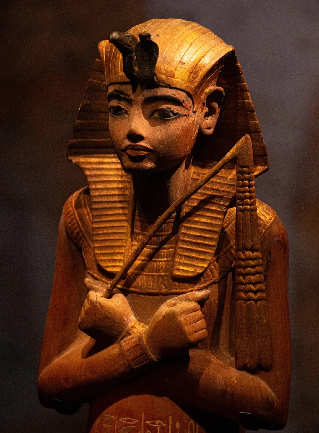 This exquisite funerary figure, or shabti, was discovered in the tomb of King Tutankhamun, and stands out for both its impressive size (51.6 cm) and exceptional craftsmanship.