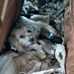 The dog watched closely, alert but not aggressive. Instead of reacting with fear or hostility, it remained calm, almost as if it understood their situation.