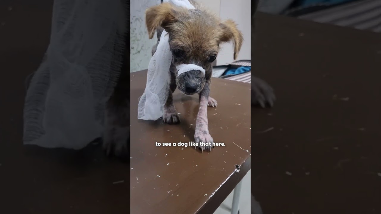 He was just a small, mangy feral puppy—his fur patchy and rough, his skin irritated, and his body thin from life on the streets. He kept his distance from everyone, his eyes filled with fear and uncertainty. To him, humans were something to avoid, not trust.