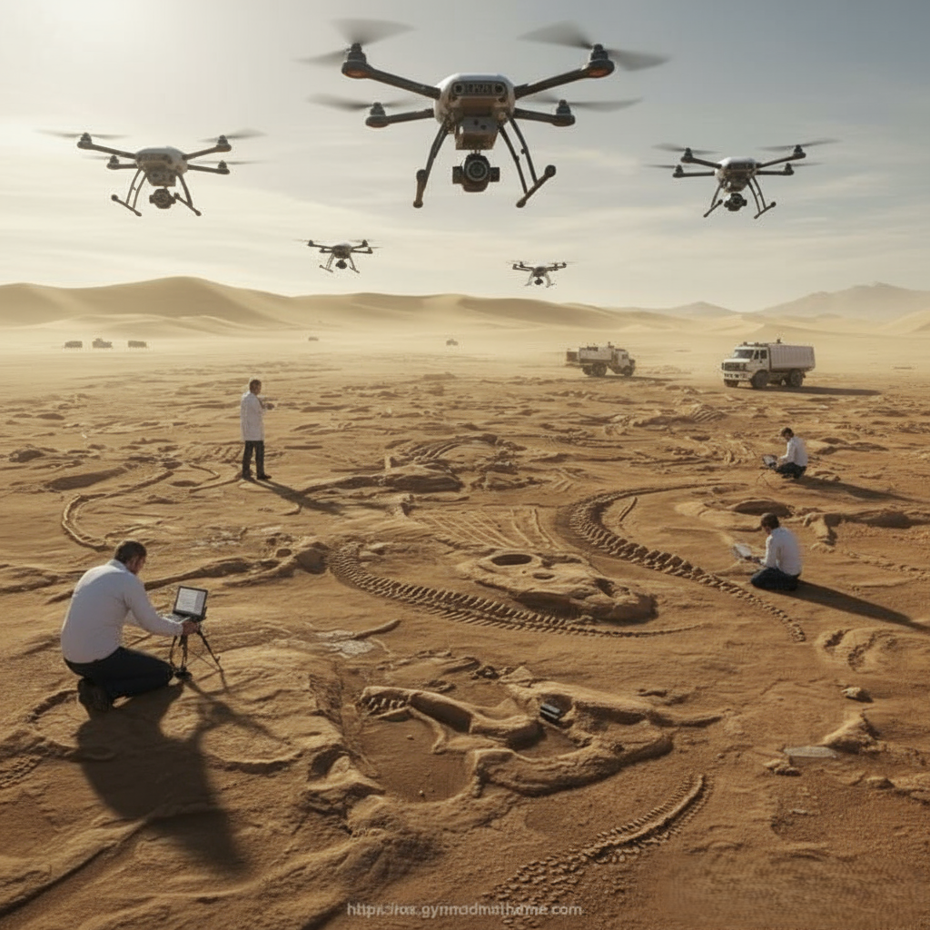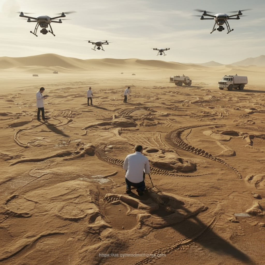 A monumental discovery in a desolate desert region has sent shockwaves through the scientific community and beyond. Drone footage from a private geological expedition has revealed an immense field of fossilized remains sprawling across the dunes — a site unlike anything previously documented in paleontology. The skeletal structures stretch for hundreds of meters, intertwined and partially buried, their sheer scale dwarfing any known species on record. Some fossils appear distinctly humanoid, while others display bizarre hybrid anatomies that seem to blur the line between animal, human, and something entirely other.