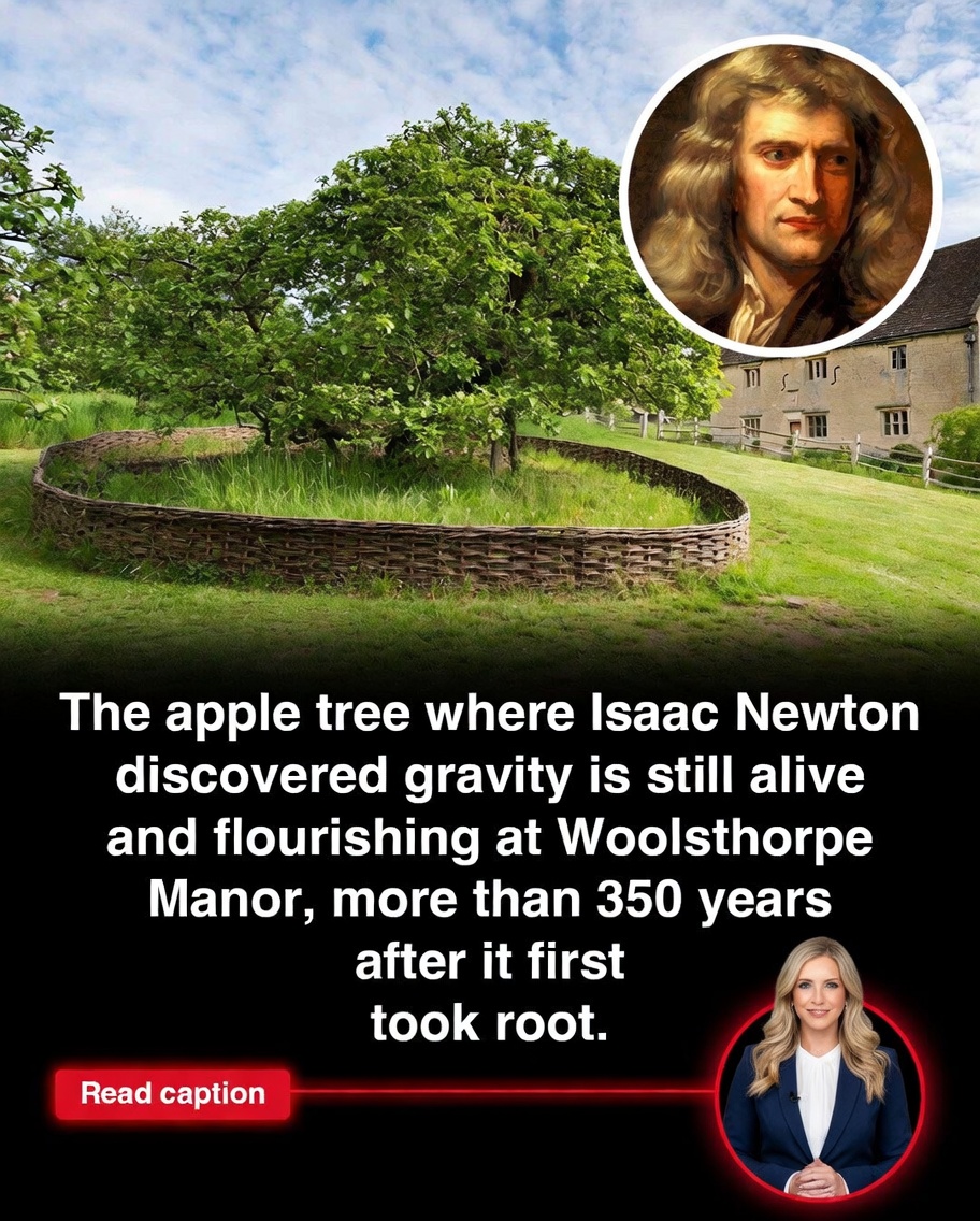 More than three and a half centuries after Isaac Newton reportedly watched an apple fall from a tree and began pondering the forces that govern the universe, the very same “Flower of Kent” apple tree at Woolsthorpe Manor in Lincolnshire, England, continues to thrive and bear fruit, standing as a living link to one of science’s most profound moments of discovery. During the Great Plague of the 1660s, when Cambridge University closed and Newton returned to his family home, he spent time in the orchard reflecting on natural phenomena, and that simple observation of a falling apple sparked questions about why objects are drawn toward the Earth, eventually leading to his groundbreaking formulation of the law of universal gravitation published in 1687. Today, the historic tree is carefully preserved by the National Trust, having survived storms, including a significant one in 1816 that damaged but did not destroy it, allowing it to regrow and remain a site of pilgrimage for scientists, students, and history enthusiasts from around the world.